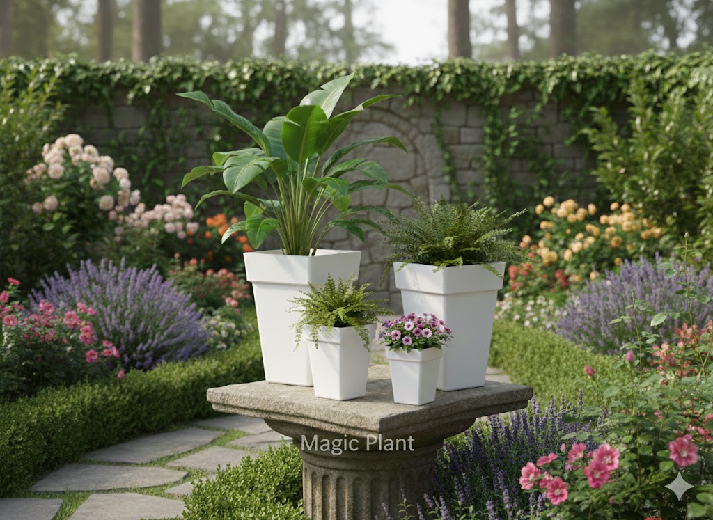 Sublimez vos plantes avec ce set de 3 pots blancs au look unique : base verticale et col carré ! 🔳🌿 En plastique léger et lumineux, ils s’adaptent à tous vos espaces.